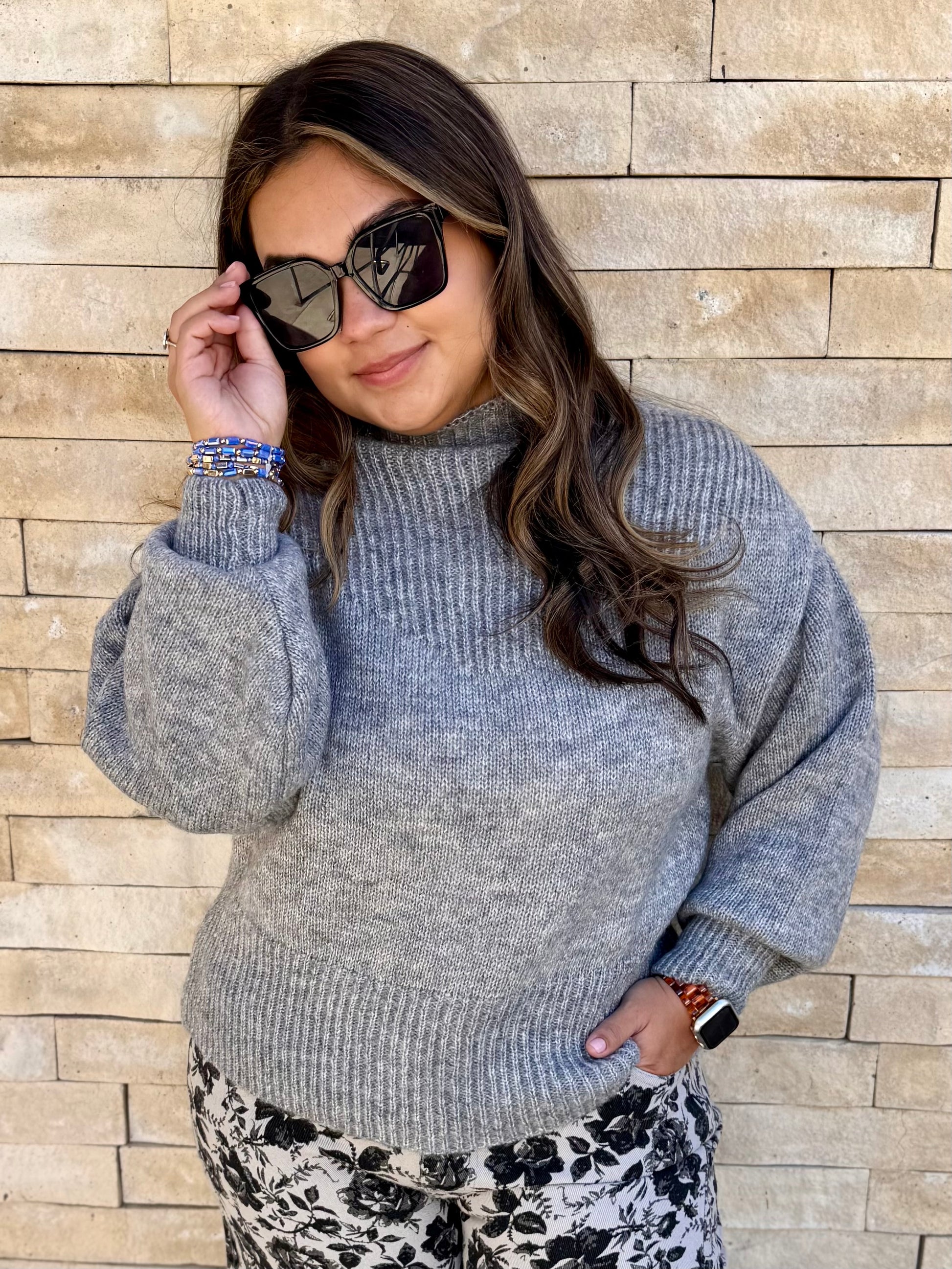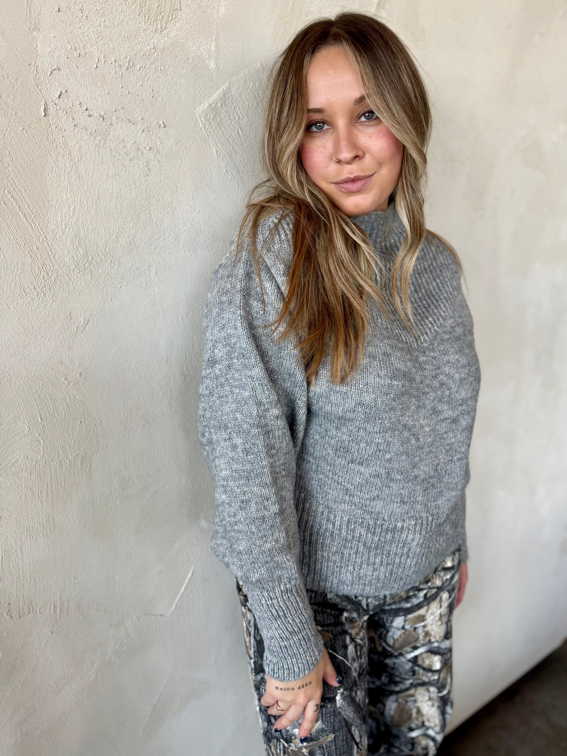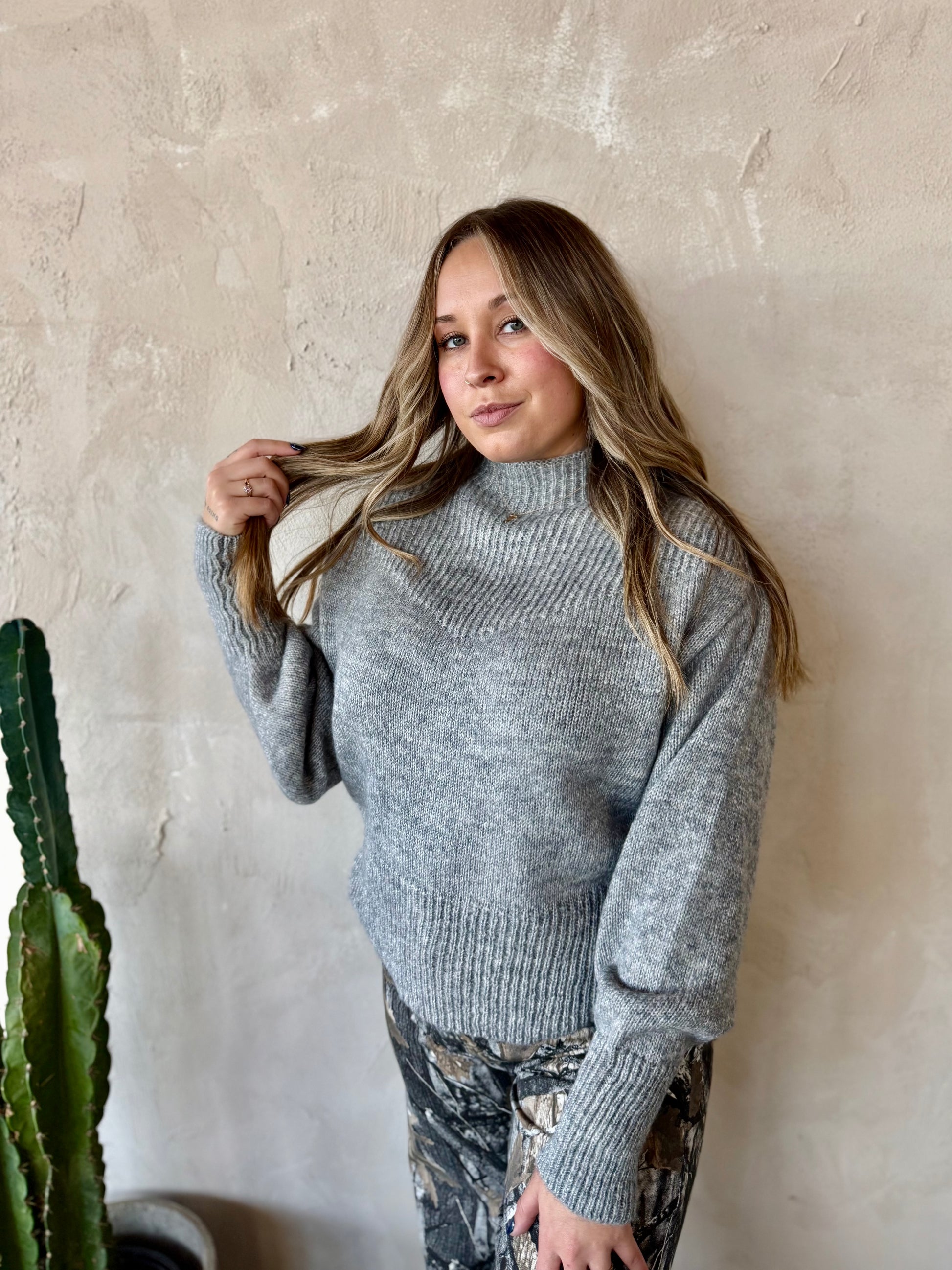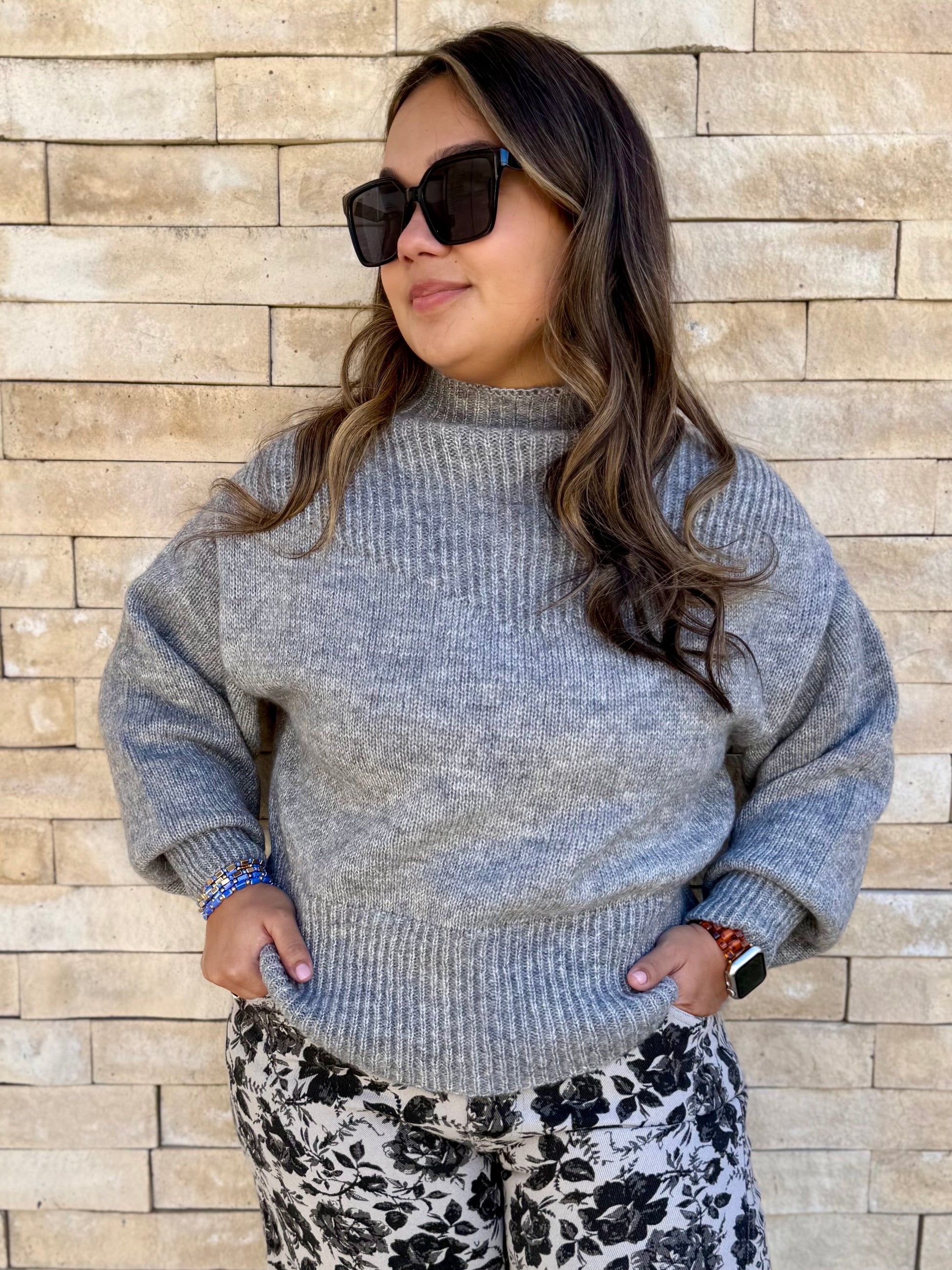 The sweater you live in when the days slow down. This soft knit features a relaxed silhouette, cozy ribbed cuffs, and an easy mock neckline that keeps things warm without feeling bulky. Effortless, comfortable, and endlessly wearable…Perfect for crisp mornings, quiet afternoons, and everything in between!