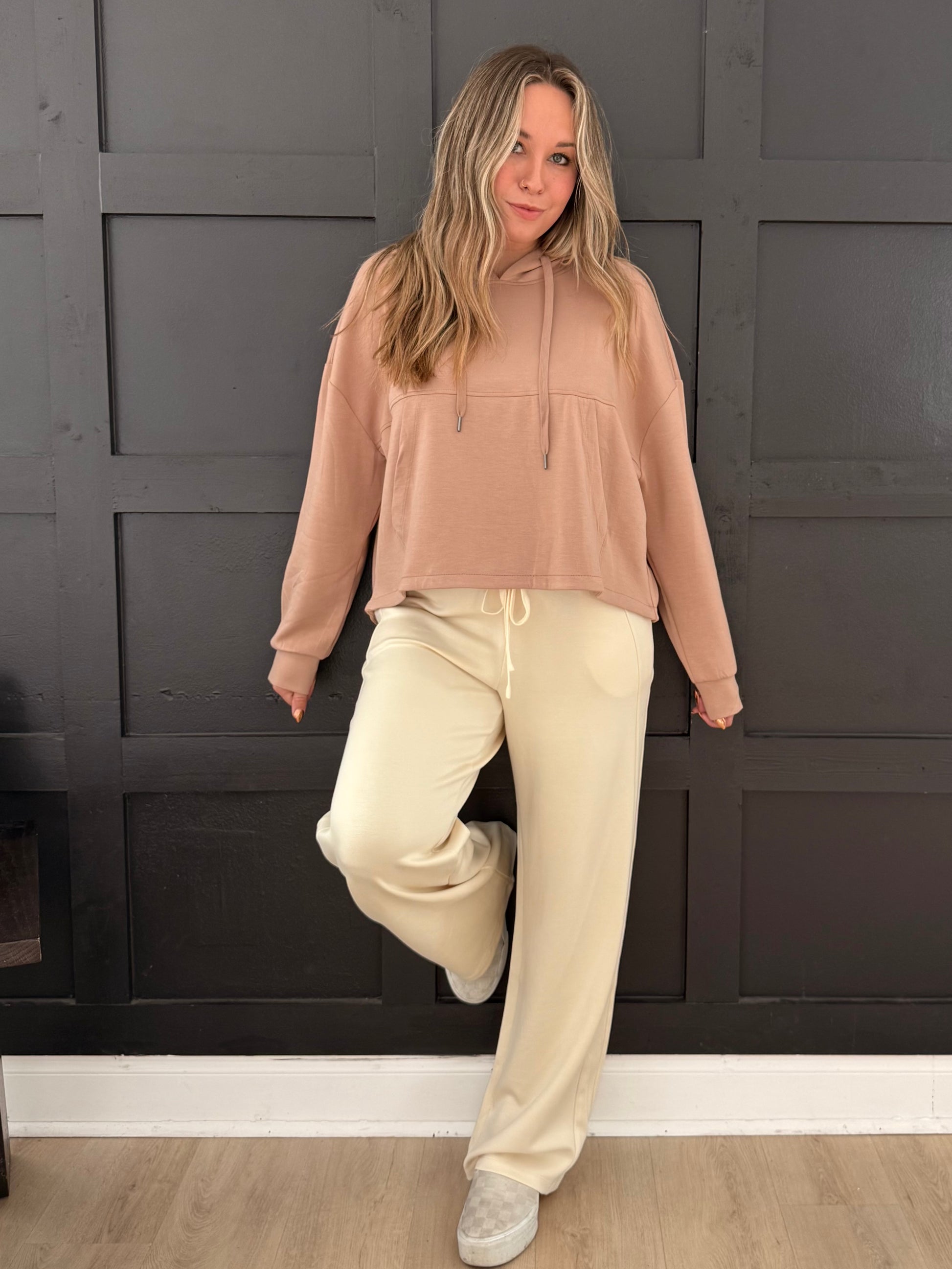 For the beige girlies 🤍 This double knit, kangaroo pocket, oversized hoodie is perfect for your slow mornings on the couch, sipping coffee with the fam. The drop shoulder line gives you that comfortable, chic, boho look, while the fabric keeps you draped in effortless warmth.