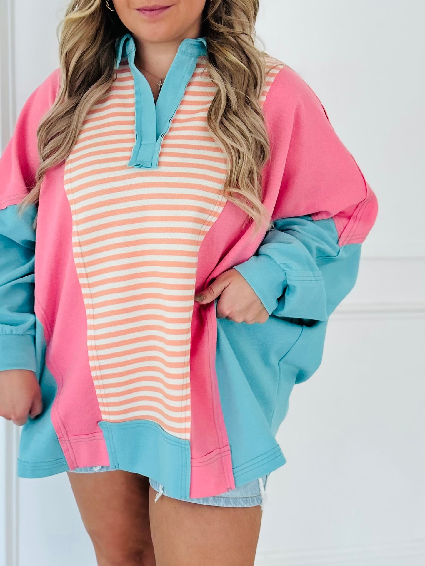 Bold and beautiful, these colors complement each other perfectly for the spring and summer seasons! Oversized fit, light weight feel.