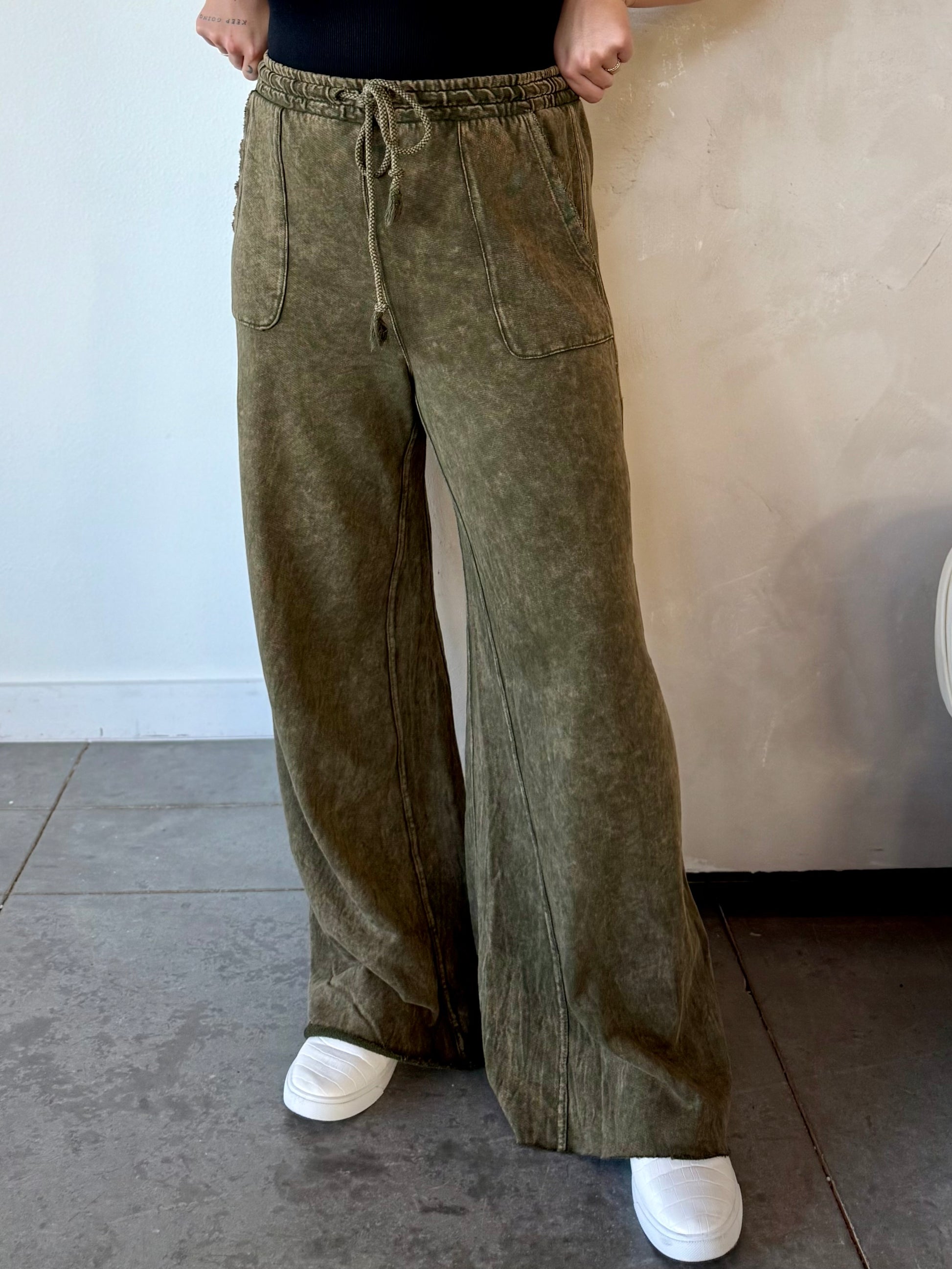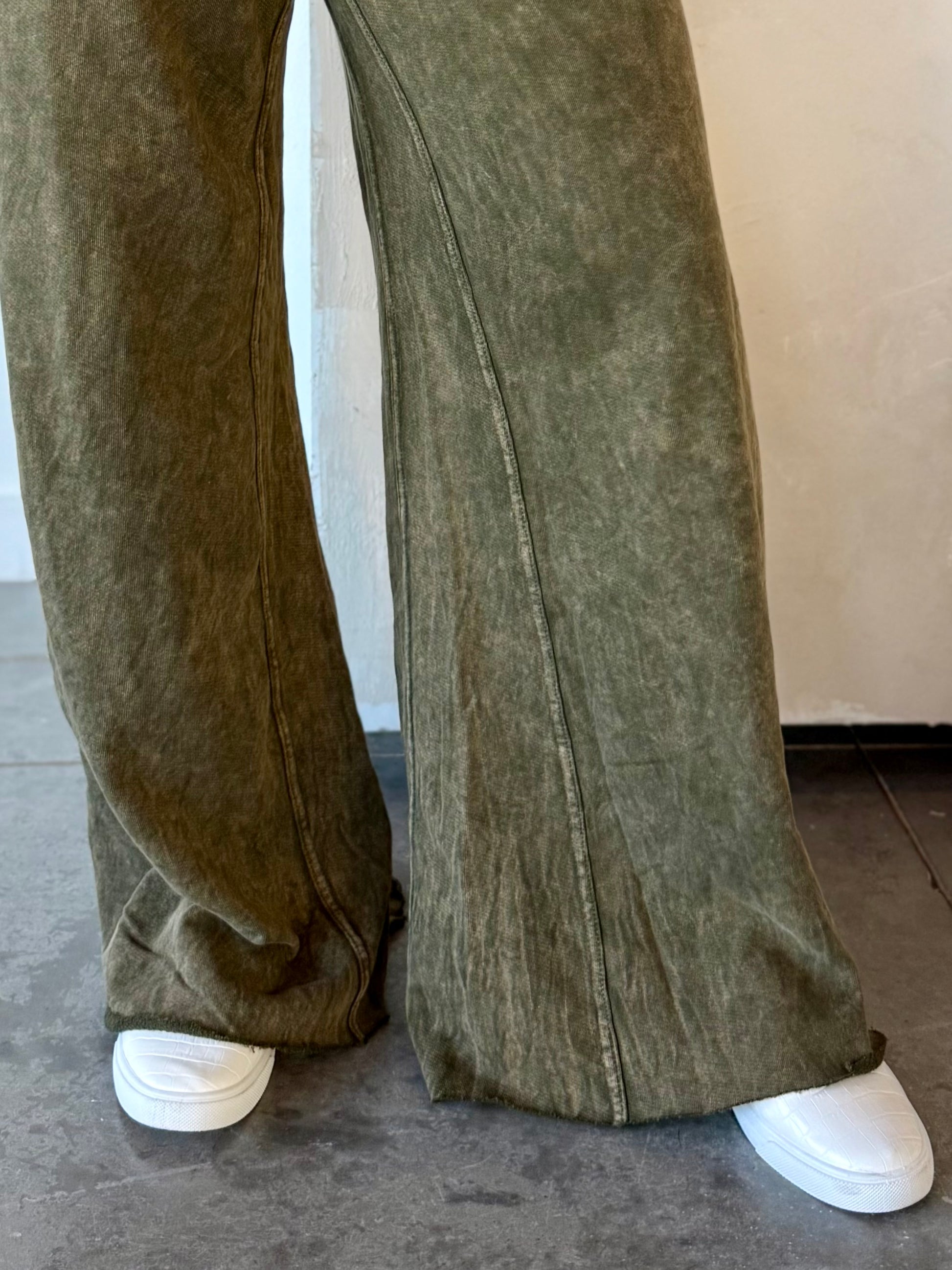You will LIVE in these pants this fall š the flare style gives these pants that effortless look you've been going for... and the adjustable waistband gives you nonstop, all day comfort! Deep olive color with an acid wash... not to mention, a 33 inch inseam! Perfect for tall girlies! Shorties, just give the bottoms a trim š